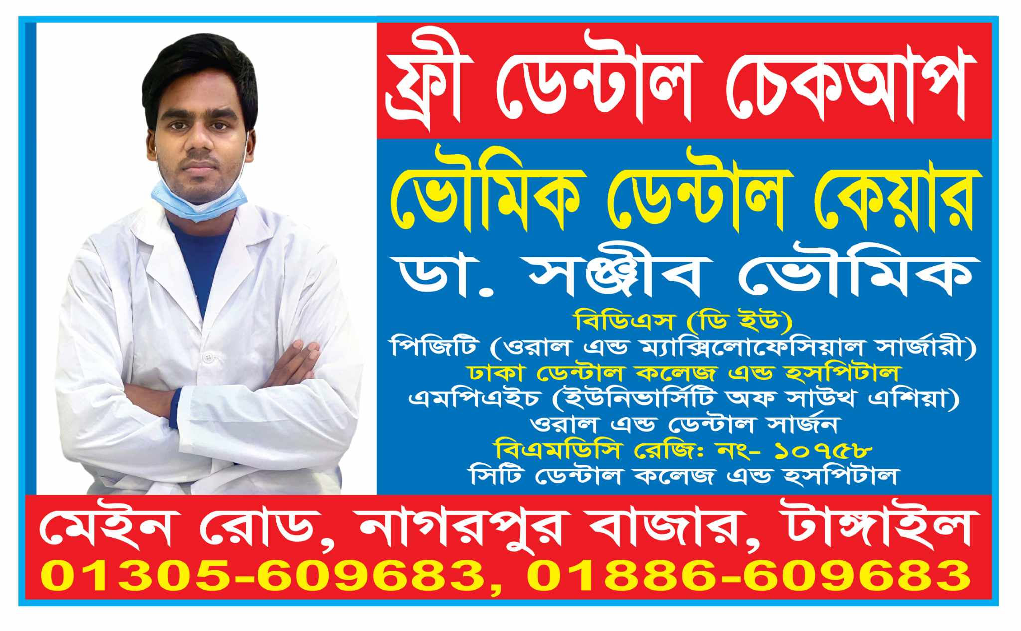 আসছে আগামী ৭ সেপ্টেম্বর, ২০২৩ ইং তারিখে, ভৌমিক ডেন্টাল কেয়ার এর উদ্যোগে নয়ান খান মেমোরিয়াল উচ্চ বিদ্যালয়ে **ফ্রি ডেন্টাল ক্যাম্পেইন** অনুষ্ঠিত হতে যাচ্ছে ।