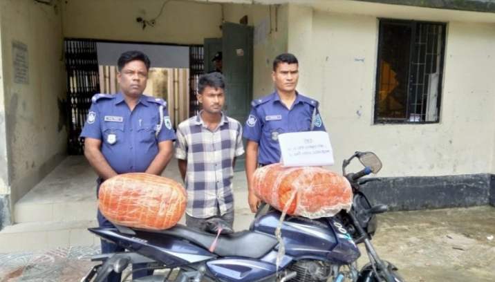 কুড়িগ্রামের ভূরুঙ্গামারীতে ২ ব্যাগ গাঁজা ও পালসার মোটরসাইকেল সহ আটক ১