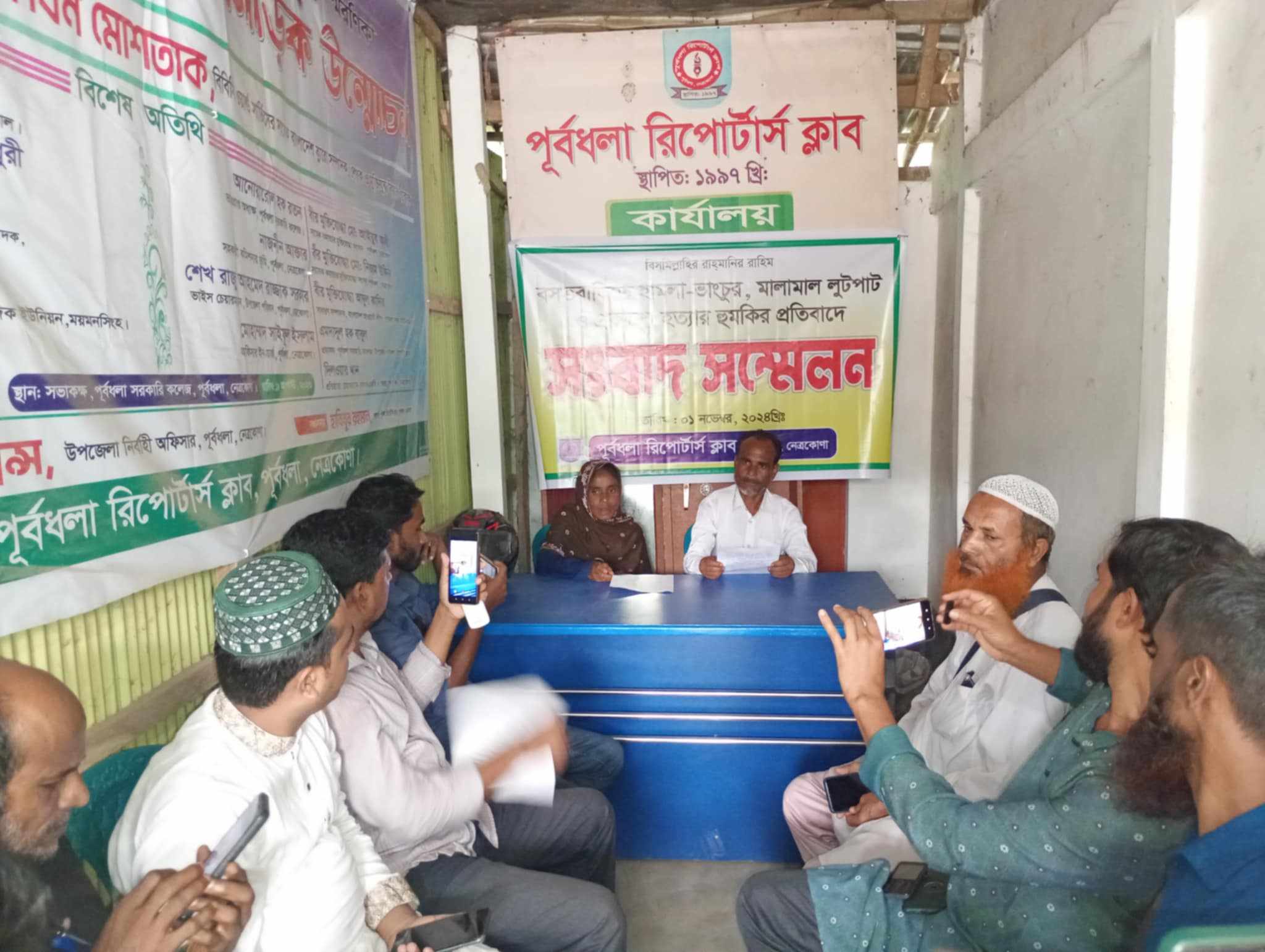পূর্বধলায় বসতবাড়িতে লুটপাটের অভিযোগে সংবাদ সম্মেলন