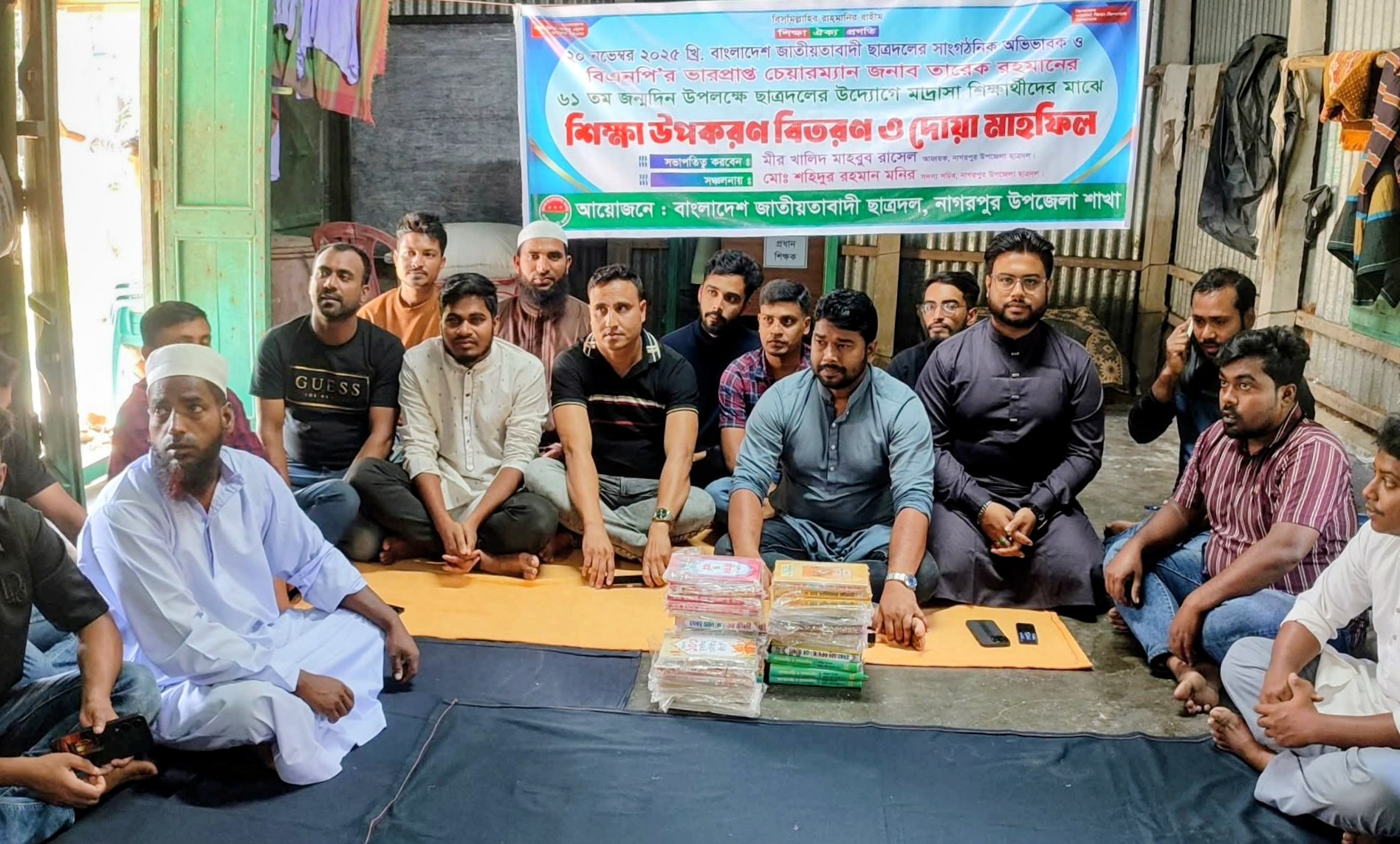 শিক্ষা উপকরণ বিতরণ শেষে বিএনপি'র ভারপ্রাপ্ত চেয়ারম্যান তারেক রহমানের দীর্ঘায়ু এবং দেশ ও জাতির কল্যাণ কামনায় দোয়া মাহফিল অনুষ্ঠিত হয়।