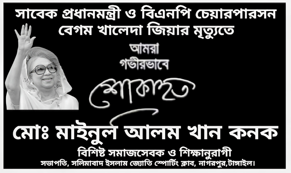 সাবেক প্রধানমন্ত্রী বেগম খালেদা জিয়ার মৃত্যুতে গভীর শোক প্রকাশ করেছেন জননেতা মোঃ মাইনুল আলম খান কনক