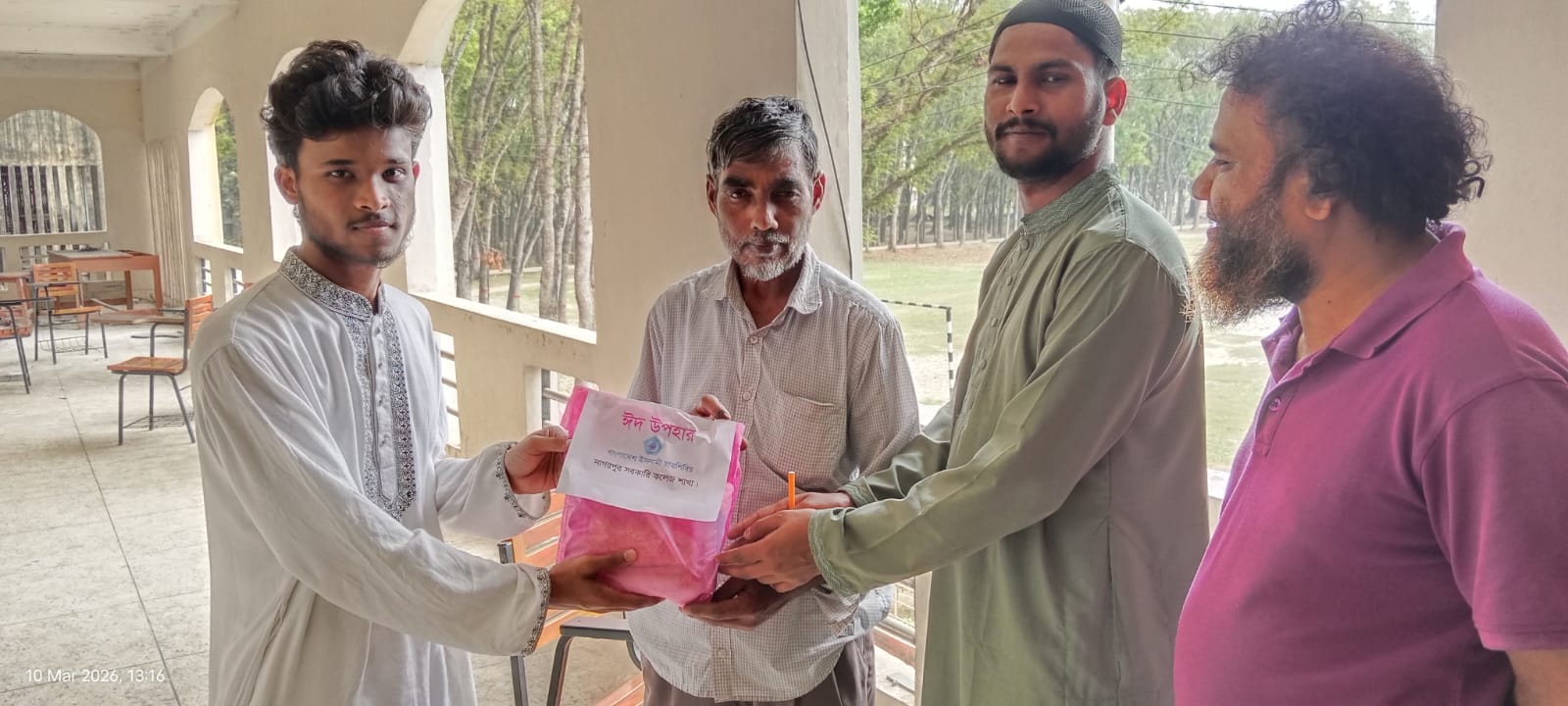 মঙ্গলবার (১০ মার্চ) সকালে কলেজ প্রাঙ্গণে আয়োজিত এ কর্মসূচিতে কর্মচারীদের হাতে ঈদ সামগ্রী তুলে দেন শিবির নেত্ববৃন্দ।
